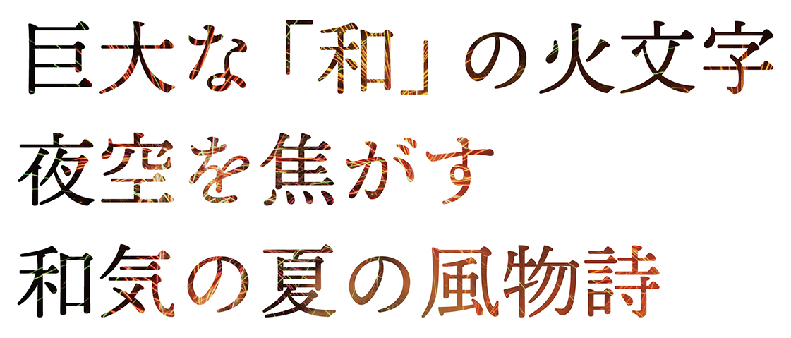「和」とは、それは「和気町」の「和」の字を表すとともに、「大文字」の火文字とあわせ「大和(やまと)」をも意味しています。
